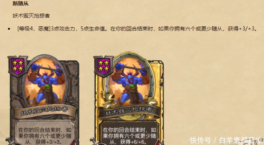 还有58嘲讽恶魔也会新版本更新后,无情地从酒馆战棋中移除,取而代之的是巫术毁灭掠夺者。当玩家有六个或更少的小兵时,小兵会得到+3+3,这更适合恩佐。斯和克苏恩系统成长性比较高但是实力比较一般,不可能成为魔流的核心大哥。