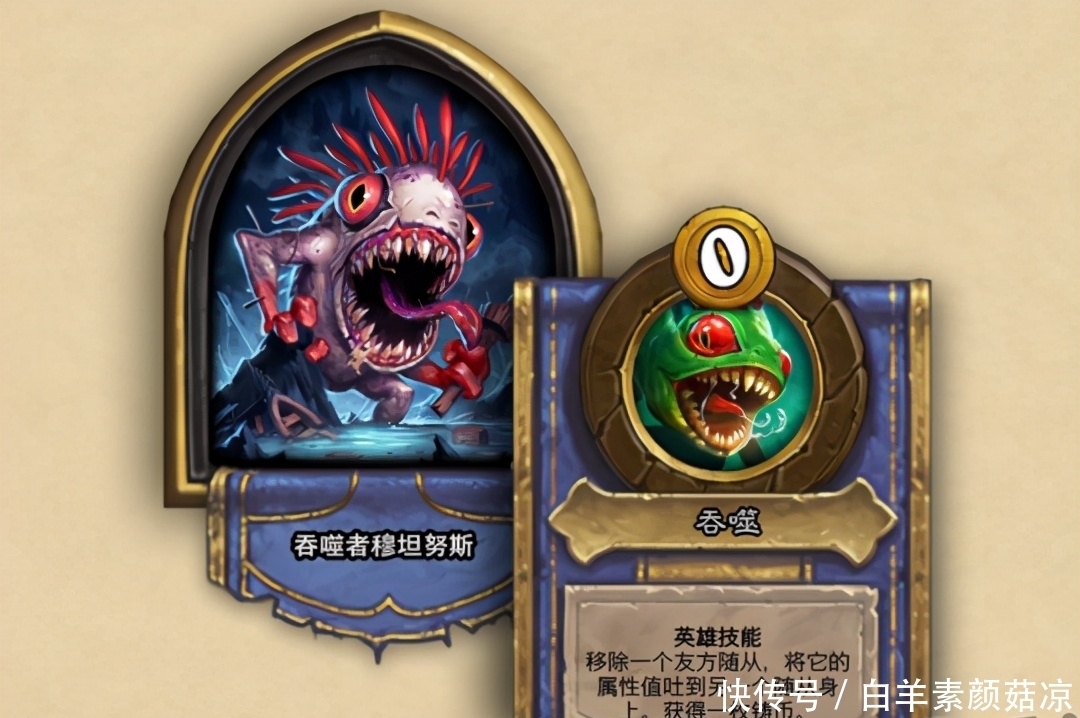 吞食者穆塔努斯的技能处于“不活”的超模状态。可以移除一个友方随从获得一枚金币,同时将自己的属性值转移给其他随从,完美解决了贵方随从可怜身材的尴尬。
